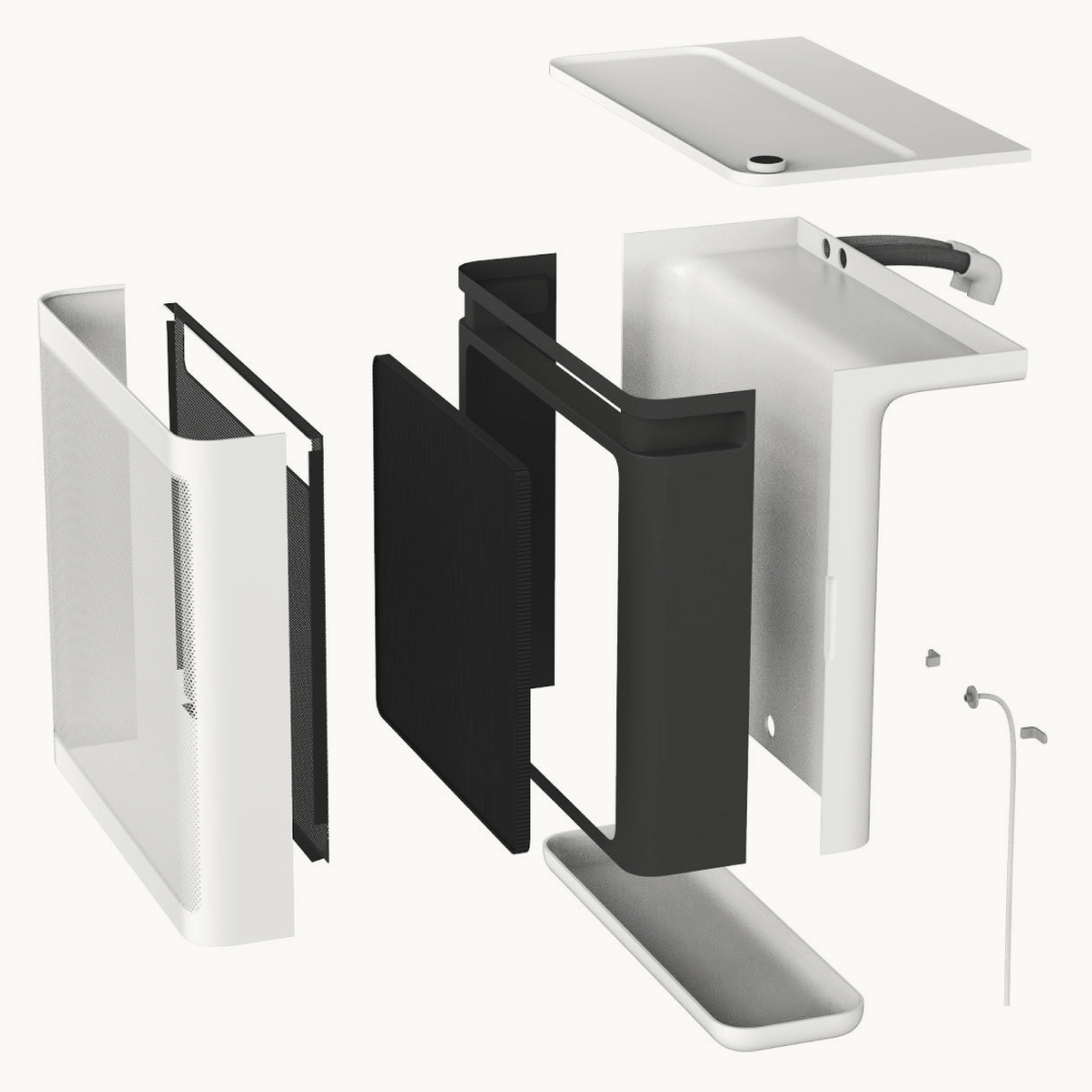“The Gradient unit resembles a bench with two thick supports that you hang over a windowsill. The clever design means the unit doesn't obstruct the view out the window and places the noisier components on the outside.”
